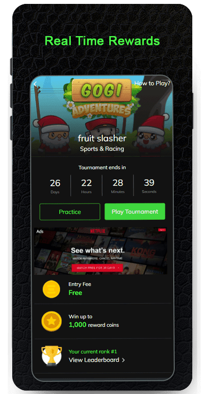 Access to 400+ games in practice zone Live Tournaments being configured on high score games.